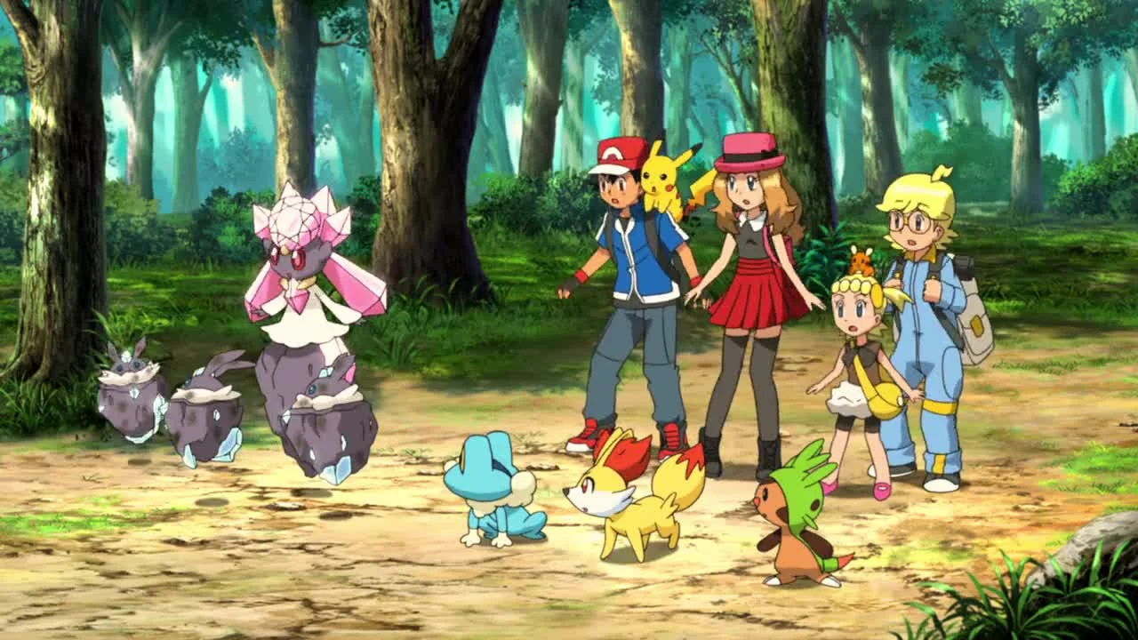 В аниме «Покемон XY: Дианси и кокон разрушения» Эш Кетчум и его друзья — Серена, Клемон и Бонни — отправляются в алмазный город, где встречают легендарного покемона Дианси. Этот редкий покемон обладает способностью создавать алмазы, но его силы привлекают злодеев, желающих использовать их в корыстных целях. Дианси оказывается в опасности, когда таинственный кокон разрушения, способный уничтожить весь город, активируется. Эш и его команда решают помочь Дианси, но для этого им предстоит разгадать тайну кокона и остановить тех, кто хочет захватить силу покемона.